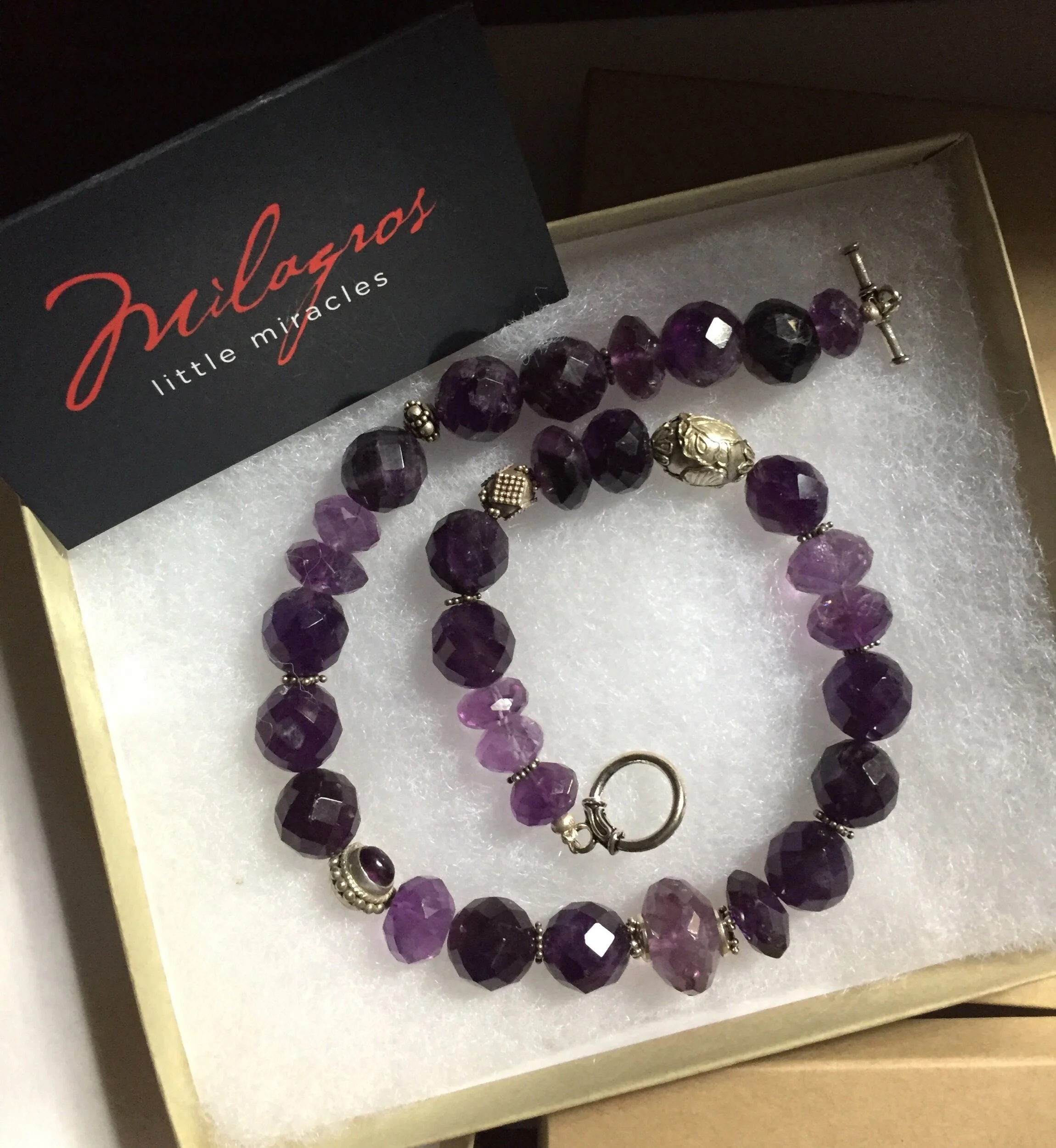 Image 1 of 3 Image 2 of 3 Image 3 of 3 Amethyst Necklace $152.00 Mixed amethyst beads with ethnic silver.Length: 17 inches.Price: $152.00 Add To Cart Added! Mixed amethyst beads with ethnic silver.Length: 17 inches.Price: $152.00
